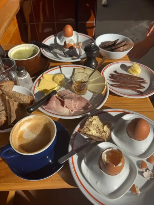 Le petit déjeuner : j’adore aller chez Moutchou pour les œufs à la coque extra frais. Et le petit déjeuner à la carte de compétition avec un sourcing produit toujours irréprochable.